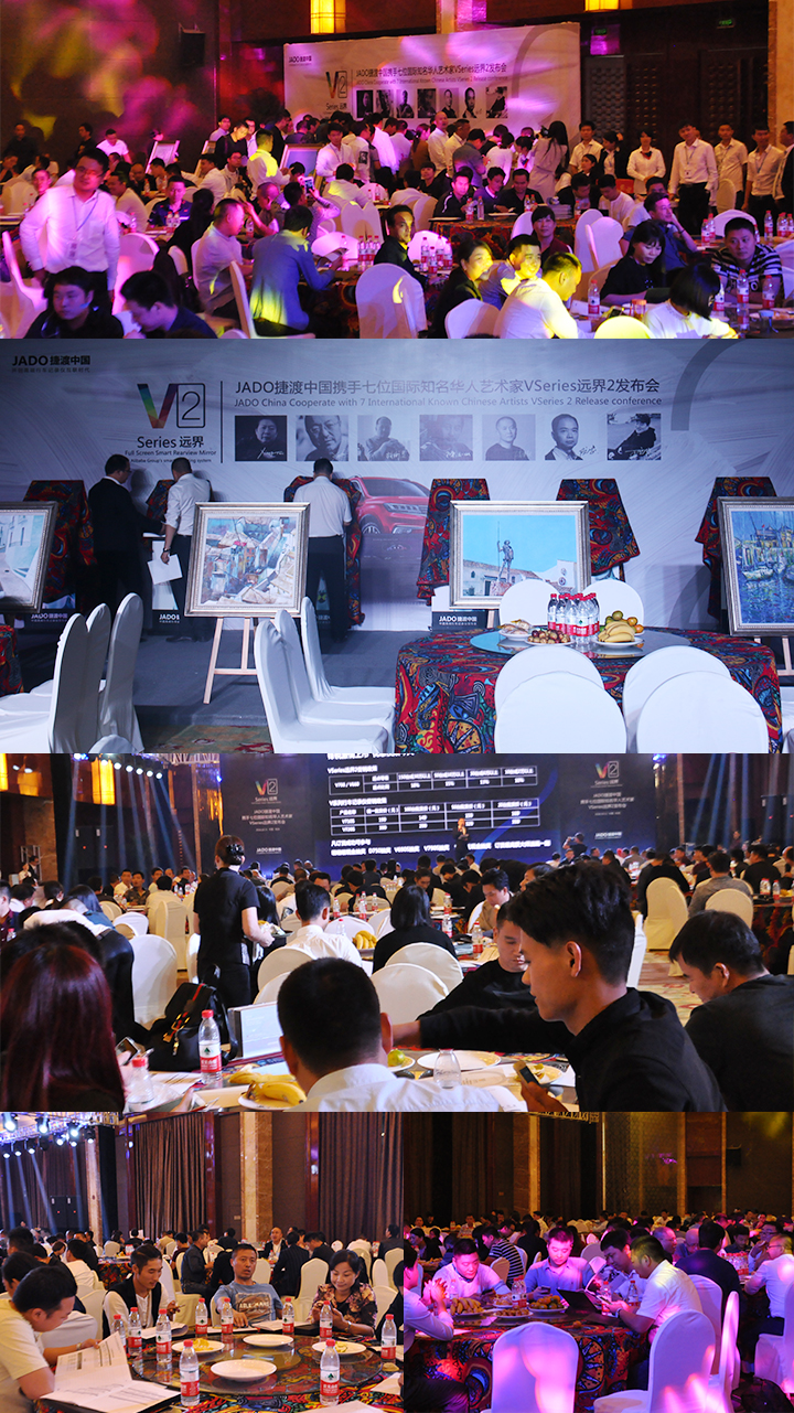 本次會議也是JADO捷渡中國互聯網+全屏智能后視鏡VSeries遠界2的首次亮相,專業研發,匠心制造更加驗證了JADO捷渡對中國市場的堅定承諾。現場展示了JADO捷渡中國VSeries遠界2全球首批七位藝術家用戶為遠界2上市創作的油畫作品,JADO捷渡中國作為禮品贈予會議當天的合作伙伴們。