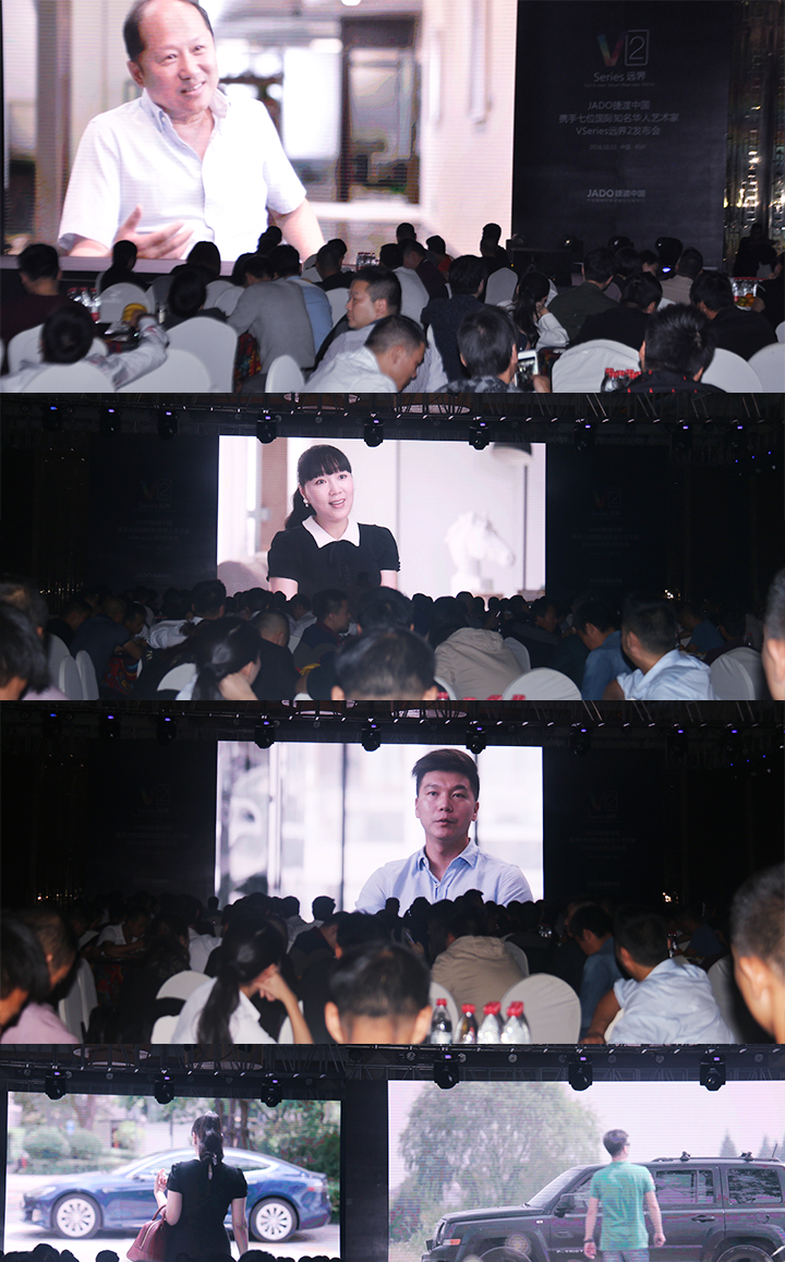 發布會現場首播了VSeries遠界2全新制作的廣告大片——《再見》,帶著與會嘉賓共同感受了JADO捷渡中國創新與改變的決心。廣告片《再見》的首播儀式,也是第一次亮相,引起了全場的驚嘆!從影片中,我們看到了作為一款互聯網+智能的產品,給車主生活帶來的改變和驚喜。