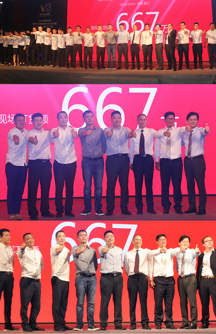2016年3月,JADO捷渡中國再一次出發,26場工廠開放日活動,讓經銷商走進工廠。6月,行業品牌第一次上央視等,這一切,都會讓行業記住:‘現在決定未來,遠界就是力量!’”