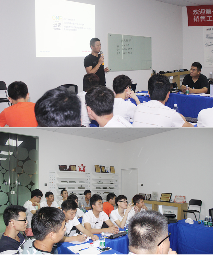 6月19日,以“產品技術支持”為課題的JADO捷渡中國第一屆銷售工程師技術支持研修班,在JADO捷渡中國深圳生產基地舉辦。JADO捷渡中國研究院負責人和各戰區VSeries遠界技術支持工程師,展開為期四天的培訓,共同進行關于VSeries遠界產品培訓以及探討職業規劃,在思想上進行一次 “充電”。