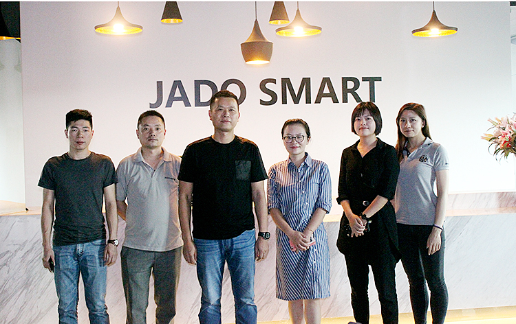 9月14日,廣匯集團高級集采經理黃曄女士一行來訪JADO捷渡智能(中國)深圳生產基地,JADO捷渡智能(中國)營銷中心總經理陳問文先生對黃曄經理及廣匯一行人的來訪表示了熱烈歡迎,并進行了深入的交談。
