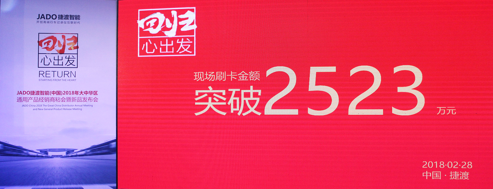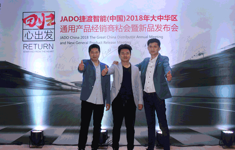 2018年2月28日,以“回歸·心出發”為主題的JADO捷渡智能(中國)大中華區通用產品經銷商粘會暨新品發布會在深圳觀瀾格蘭云天國際酒店隆重舉行。