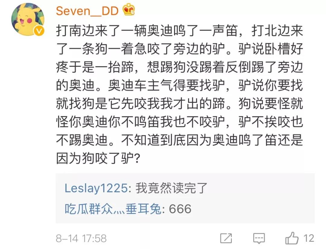Q1、奧迪車主鳴笛,狗驚嚇咬驢,驢踢奧迪車,事件應該如何定性呢?