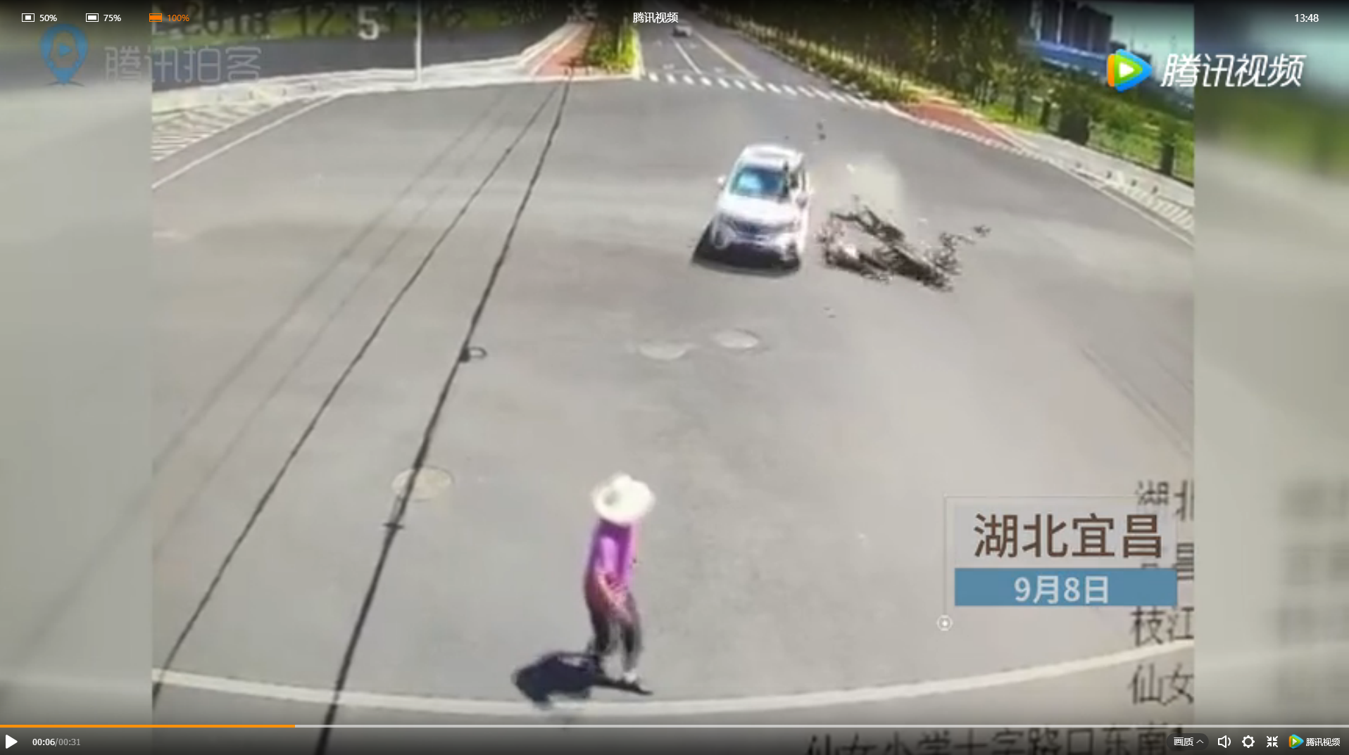 9月8日,湖北枝江一輛白色越野車在經過十字路口時與一輛摩托車相撞,摩托上載有4人(兩大人兩小孩)瞬間被撞飛,越野車在避讓過程中又將一過馬路的行人撞翻,事故造成摩托車乘坐八歲男童當場死亡,摩托車駕駛員等四人受傷。目前,受傷人員正在接受治療。