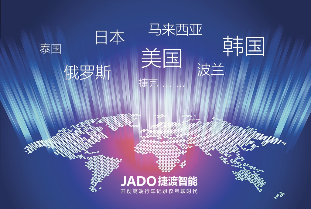 JADO捷渡智能(中國)深耕行車記錄儀行業已8年之久,成為汽車后市場行業最有影響力的品牌之一!立足國內,放眼全球,JADO捷渡智能(中國)不斷開拓創新,最終憑借卓越的性能、可靠的品質受到全球消費者的青睞。目前JADO捷渡智能(中國)已經在北美、日韓、歐洲、東南亞等多個國家和地區建立自主品牌銷售渠道,在全球超過60個國家和地區完成了商標注冊。先后與世界500強美國霍尼韋爾等國際企業達成了戰略合作,連續兩年亮相全球最大的電子產品展“香港環球資源電子展”成為矚目企業。